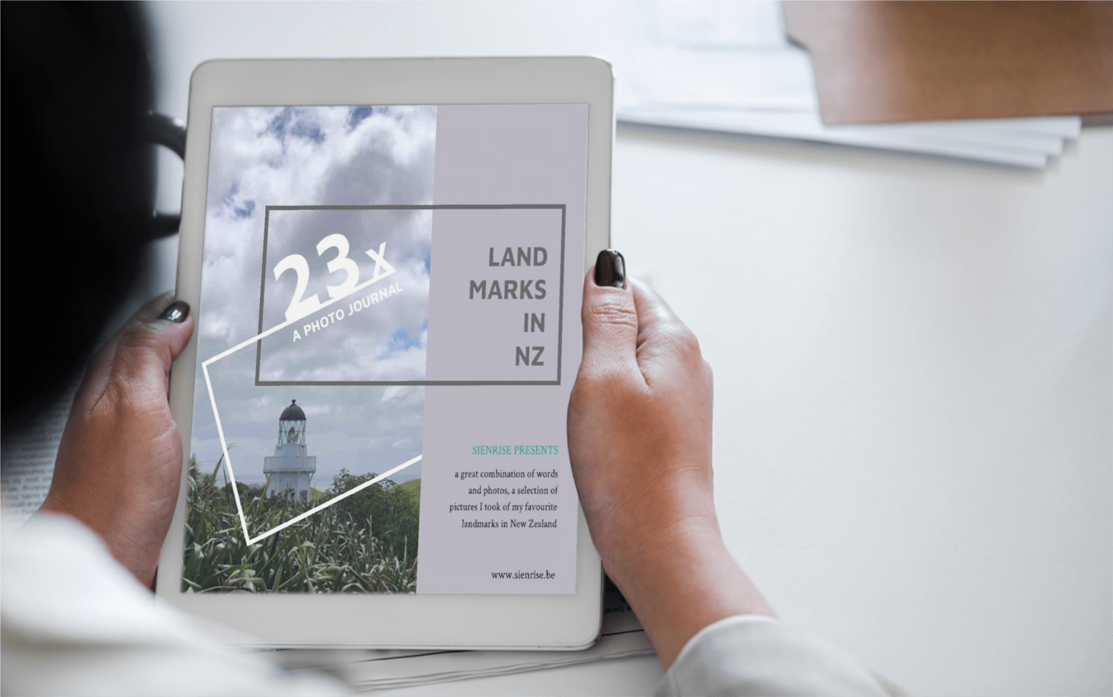 Ebook “23x landmarks in nz” is a photo journal. A great combination of words and photos, a selection of posts of @sienrisereality on Instagram. And it’s even more then that: I added information on the places/cities/landmarks I visited in New Zealand in 2020 and 2021, so it becomes a little travel guide too.